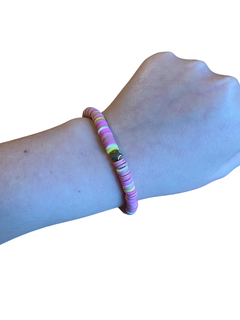 Pink and yellow clay bead bracelet